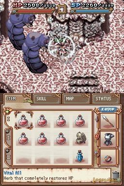 Passé cela, le gameplay en combat est assez pauvre... vous pourrez donner des coups normal avec votre arme, et chacun des autres boutons de la DS permet d'y attribuer un skill...