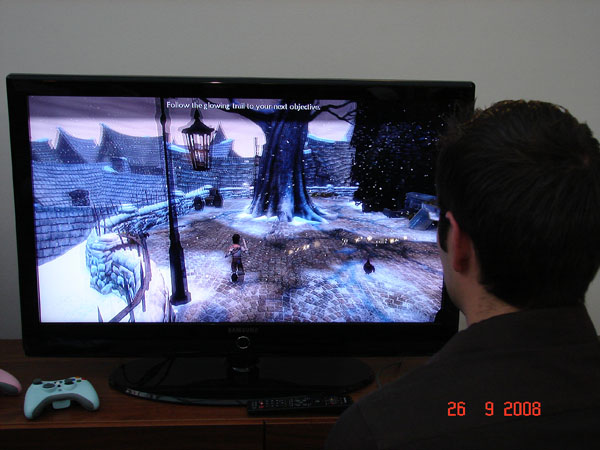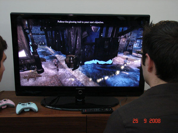 Fayte et moi avons donc pris chacun une manette pour s'essayer à Fable II.
