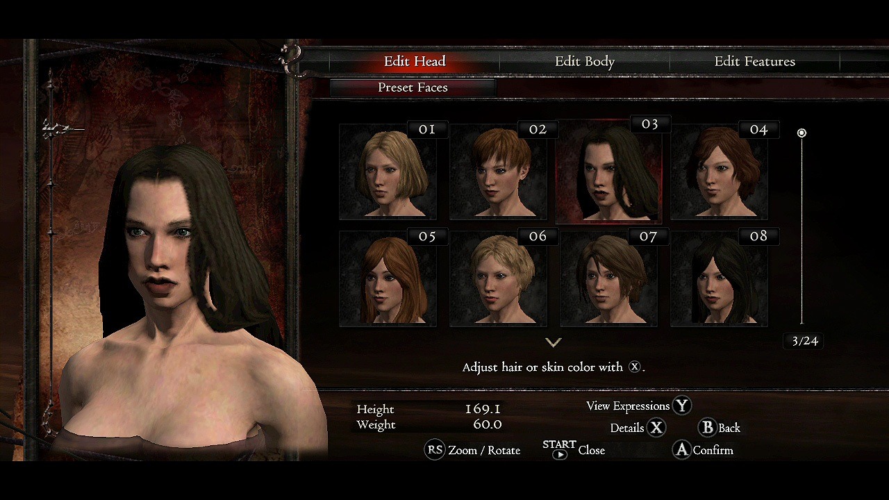 Le monstre est rapide, puissant, imposant, chacune de ses têtes ayant un rôle différent : la tête de lion guide le corps et les attaques physiques, celle de chèvre utilise la magie, celle de serpent couvre les arrières et empoisonne. Il faut anticiper et agir, les Pions étant encore plus utiles que d'habitude car offrant des informations et supportant le joueur, par exemple en le soignant au bon moment, en enchantant ses armes ou en le prévenant à l'avance de leurs actions. A se demander qui guide qui, au final ! Il est également possible de leur donner des ordres simples via la croix directionnelle, un choix pas vraiment faramineux dont la démo ne laisse pas apparaitre une éventuelle évolution (un mode pause pour donner des ordres aurait été tellement mieux!). Vient ensuite le large panel d'actions offert pour aborder le combat, qu'on découvre à tâtons au fil de l'affrontement : grimper sur le monstre pour terrasser les têtes, viser la tête de lion pour plus de dégâts ou les pattes pour le faire chuter, attendre que le mage l'aveugle pour s'acharner... le combat suit son cours, la musique épique va crescendo avec la progression du combat, le monstre devient progressivement teinté de son propre sang et puise dans ses dernières forces pour opposer au groupe une vélocité encore plus accrue. Et puis enfin il tombe, achevant du coup cette première partie de la démo avec un vrai sentiment de satisfaction. Acte II : Création de PersonnagesLa seconde partie de la démo est dédiée à la création de personnages, avec un accès à l'intégralité des options et la possibilité d'importer ses créations dans la version finale du jeu. Un large choix est ainsi offert au joueur qui peut choisir un modèle déjà établi et juste en déterminer le sexe, le nom et la voix, mais également une customisation plus en profondeur en changeant la morphologie de son personnage : taille, poids, cheveux, signes particuliers, tatouages, couleur de peau/yeux/cheveux, etc. quelque chose de finalement très complet, chacun pourra trouver chaussure à son pied de l'athlète grec à la mémère de 1 mètre 20 et 150kg. On peut également créer le profil de son Pion (cependant, pas de choix de job dans cette démo). Et je précise bien, son Pion. Acte III : Quête ExtérieureAprès les ruines, le grand air avec un combat contre un Griffon. On peut prendre le temps d'observer les alentours pour observer une profondeur de champ assez impressionnante, des décors quand même très jolis et si l'on patiente un peu, de voir que le jeu dispose d'un cycle jour/nuit.