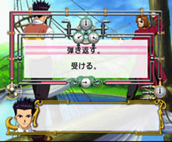 LIPS (Live & Interactive Picture System)/Dating simulation : On rappel que les LIPS sont des menus interactifs qui apparaissent lors d'une question qui vous est posée. Vous avez plusieurs choix de réponse, y compris ne rien dire, et le résultat influera positivement, négativement ou neutre sur votre interlocuteur, selon deux niveaux d'importance et toujours avec un timing plus ou moins serré. Sakura Taisen 2 avait également bonifié le système en proposant des LIPS avec des variables en cours de timing. Autre ajout, les full LIPS (ou des séries de choix) pour obtenir un résultat à une action. Il était également possible d'avoir des LIPS en cours de combat régulièrement. Tout ça dans l'unique but de faire progresser les statistiques de vos personnages et sans oublier que par le biais de leurs affinités envers vous, la fille la plus proche du héros sera celle de la fin du jeu. Sakura 3 reprend la totalité des idées, mais ajoute son grain de sel. Certaines formes de LIPS vont changées, par exemple pour simuler le ton de la voix, vous allez avoir une barre dans la boîte de dialogue que vous pouvez monter ou descendre. Dans un cas de discrétion, mieux vaudra ne pas parler trop fort, mais pas trop bas non plus pour que votre interlocuteur puisse vous entendre, etc... A signaler que les personnages secondaires font maintenant très clairement l'objet d'affinité (avec le bruitage d'indication). Ils concernent les caractéristiques du héros et vous aurez même quelques séquences inédites avec eux à découvrir. Le cabaret, Montmartre plus d'autres lieux seront autant de terrains de jeux disponible. Par exemple Montmartre vous avez le marché, l'église, le square, l'ambassade... jusqu'au cabaret qui lui, possède toutes les pièces de la scène, des bureaux de la direction... jusqu'aux douches. Ce coup-ci, même si les déplacements se font toujours avec un curseur, la réalisation est en 3D, toujours SD pour les personnages. Dans ces phases de temps libre vous avez l'horloge à l'écran qui vous indique l'avancée de vos activités, certains lieux prennent 5min ou d'autres peuvent prendre 15 minutes. A vous de faire vos choix. En cours de déplacement, vous pouvez aussi tomber sur un personnage, un menu d'"intervention" se met en place, libre à vous d'engager la conversation ou pas. Le visual memory va encore intervenir dans ces phases de déplacement. Parfois, en fonction de la situation, on vous demandera une tâche à distance ou on vous proposera un rendez vous. Vous serez au courant par une sonnerie assez agressive sortant de votre carte mémoire. A ce moment précis regarder votre petit écran, un personnage vient d'envoyer un message pour vous, et vous n'avez plus qu'à le lire pour savoir sa nature. En quelque sorte, sachant que l'histoire se déroule dans les années 20, on peut dire que c'est l'ancêtre du SMS. Le téléphone avec écran portatif, le kimematron et les mini-games sont aussi de la partie. Si le premier ne change pas trop, le second lui, change de visage. Moins nombreux que dans Sakura Taisen 2, à cause du nombre de filles, ils sont en revanche plus intéressants encore. Intégralement en 3D, en SD, ils sont une ode au ludisme. De plus, ils proposent différents niveaux ce qui rallongent leur durée de vie. Vous trouverez aussi si vous êtes perspicace l'opportunité d'infiltrer un casino, et quelques jeux de cartes qui vont avec. (Les jeux intégrales ne sont malheureusement disponibles que sur le disque bonus du box collector réunissant les quatre Sakura Taisen de la Dreamcast) Les combats : Le point le plus parlant de ce troisième épisode. Passage de la 2D à la 3D, ils représentent une véritable révolution dans la série, mais apporte également une nouvelle façon d'aborder des batailles tactiques. Entièrement en 3D et à 360°, le damier n'est plus qu'un lointain souvenir. Ici vous êtes libre, autant que vous le souhaitez tant que vous n'avez pas validé la moindre action dans un premier temps. Il s'agit toujours du même procédé. J'entends par là qu'il y a trois catégories (déplacement, attaque et régénération). Sauf que maintenant, vous pouvez tout faire dans le même tour. Pour résumer, vous avez une barre d'action en bas de l'écran divisée en sept segments. Si l'on prend la configuration de base, environ deux pas consomme 1 segment, une attaque 1 segment, le bouclier 2, la guérison 6, recharger la barre de furie 3 et l'utiliser pour la grosse attaque 1. A partir de là, vous décidez comment vous voulez procéder. Vous pouvez très bien vous déplacez en temps réel de sept segments - histoire de voir jusqu'où vous allez et préparer les prochains tours - et revenir à votre point de départ sans perdre le moindre segment. Ceci est valable également pour un point en hauteur, vous pouvez déplacer votre machine par exemple de 6 segments et emprunter le chemin en pente pour atteindre le point surélevé qui se situait à côté de vous. Résultat des courses vous n'avez perdu qu'un segment pour déplacement, mais vous êtes maintenant sur la partie haute et vous pouvez encore agir, par exemple en utilisant 5 segments pour faire un combo dévastateur, à la vitesse d'exécution que vous souhaitez ou encore interagir sur quelques éléments du décors (comme des véhicules) pour vous protéger. Maintenant ceci est pour la configuration de base, car en tant que capitaine vous pouvez changer la formation de la barre à toute l'équipe, favorisant plus la régénération au détriment de l'attaque... Bien sûr, quelque soit votre formation, les affinités augmenteront les statistiques, entre autre le nombre de segments disponibles. Ce concept donne une très grande dimension de liberté, et bien maîtrisé, permet bien des fantaisies. Sakura Taisen 2 proposait également des attaques par équipe en fonction des affinités. Celles ci existent toujours, avec une mise en scène bien plus belle et convaincante, mais l'optio