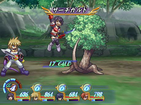 Souvenez vous de l'épisode original sorti en 1997, qui ressemblait plus à un RPG Super Nintendo avec sa petite 2D mignonne et sa carte en faux mode 7. Sympathique, mais tout de même loin d'exploiter les capacités de la 32 bits de Sony. Ici, dès les premières minutes, on s'en prend plein les yeux. Les décors sont dorénavant dans une 3D sublime, très colorée et fine, et à l'arrêt on croirait voir des décors issus des plus beaux RPG 2D. Les sprites ne sont pas en reste, tant dans les villes que dans les combats, et assez variés (on a pas l'impression de croiser toujours le même villageois). Les combats sont une véritable explosion visuelle, avec des effets spéciaux magnifique, des animations dynamiques et fluides, et des décors à plusieurs plans magnifiques. Sans aucun conteste l'un des plus beau RPG sur la Playstation 2. Namco ne faisant pas les choses à moitié, ils en ont profité pour totalement rater la carte, moche à souhait, pour bien asseoir sa domination des cartes de RPG les plus moches avec sa série fétiche, qui propose un véritable festival de laideur à chaque épisode. Côté sonore, la réorchestration des musiques donne un second souffle à une bande-son originale sans éclat, et c'est un pur bonheur. Ajoutons à cela un très grand nombre de doublages, et vous obtenez un jeu qui frise la perfection technique sur la machine. Fight in the skyIl faut être honnête, les combats de Tales of Destiny n'amenaient pas grand chose de neuf à ceux de Tales of Phantasia. Rien de mauvais, loin de là, mais depuis les Tales of ont bien évolué. Et, disons le tout de suite, les combats de ce remake n'ont plus rien à voir avec ceux de l'original. Oubliés les combats un peu mous et sans grande possibilité, place aux plus dynamiques de la série!