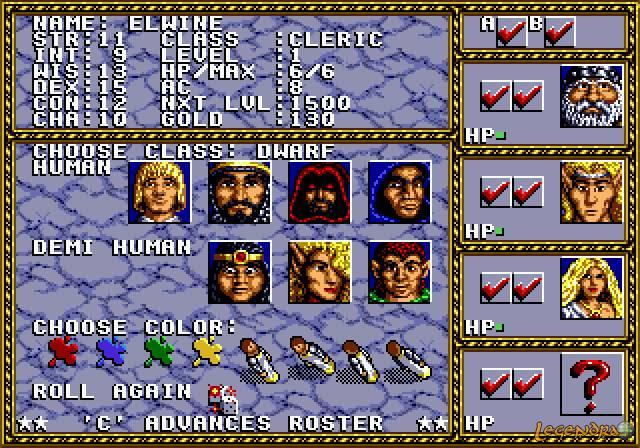 C'est à ce moment, rempli de joie d'avoir survécu aux gobelins, mais aussi d'inquiétude, que le Duc vous convoque. Si les gobelins ne sont plus un problème sur ces terres étranges, un nouvel ennemi a fait son apparition. En effet, des Homme-bêtes peuplent eux aussi ces terres et se montrent de plus en plus hostiles envers votre peuple. Il vous sera donc confié la mission d'explorer ce nouveau territoire afin de trouver des alliés pour tenter de survivre à ces créatures. Il sera implicite que cette quête aura aussi pour but de vous en apprendre davantage sur cette nouvelle et mystérieuse terre d'accueil. Si l'histoire proposée n'est, au final, pas très développée, elle a quand même l'avantage d'être originale et bien construite. La cinématique d'introduction (tout en étant assez courte) pose assez bien le décor. De plus, le fait que le château ait été téléporté dans un monde étrange et inconnu attise notre curiosité et nous pousse à jouer pour en savoir plus. Malheureusement, si les bases du scénario sont plutôt insolites, le plaisir d'évoluer dans cette aventure est entaché par un monde trop restreint où les limites de l'exploration sont vite atteintes. Bienvenue dans le monde de Donjons et DragonsCe jeu est basé sur la seconde version des règles avancées de Donjons et Dragons. A peine le jeu démarré, on ressent immédiatement l'influence de celui-ci. En effet, une fois la scène d'introduction passée et après avoir lancé une nouvelle partie, vous arrivez directement au menu de création de votre équipe, constituée de quatre personnages. Comme dans tout bon jeu de rôle papier, différentes races ainsi que plusieurs professions seront disponibles. Vous devez aussi lancer les dés (virtuels) pour générer les caractéristiques de ceux-ci. Point assez amusant, vous pouvez également modifier partiellement la couleur de vos personnages. On voit bien que l'aspect personnalisation et liberté sont les bases de ce jeu. Pour moi, la possibilité de constituer sa propre équipe est vraiment agréable et permet de jouer en fonction de son affinité du moment.