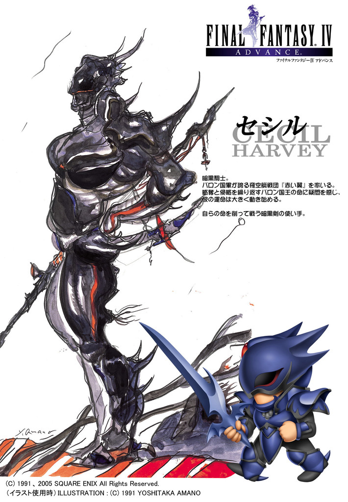 Vous incarnez Cecil, un Chevalier Noir tourmenté au service du royaume de Baron. Depuis peu, il commence à douter des principes de son roi, depuis qu'il l'envoie en mission, tuer et voler, à la recherche de cristaux. C'est pourquoi au retour d'une mission où ses hommes et lui ont fait couler le sang, il questionne le roi sur ces fameux cristaux, question à laquelle le roi se contente de répondre par une autre mission.Cette mission n'est en fait qu'un piège pour faire taire Cecil qui réfléchit un peu trop. Une explosion retentit et un village est détruit par les flammes. Cecil parvient à en réchapper en sauvant une petite fille mais en laissant derrière son allié, Kain. Notre chevalier et Rydia, la petite fille, vont donc partir à l'aventure en faisant face à une belle poignée de péripéties, de situations épiques à souhait. Le tout sur fond de plans diaboliques menés par le royaume de Baron.