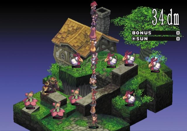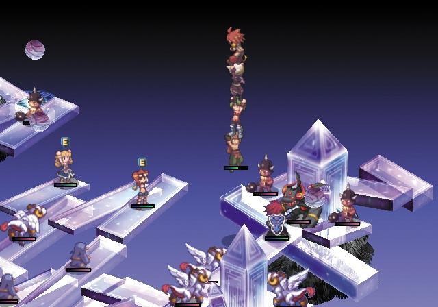 - Les lieux ! Aucun décors, tout les stages du jeu se ressemblent, et font très "maps aléatoires", contrairement à la Pucelle Tactics par exemple, fait par les même personnes, MAIS avec de vrais décors recherchés et différents à chaque map du jeu ! Là c'est carrément des blocs de partout posés dans le vide.... super !