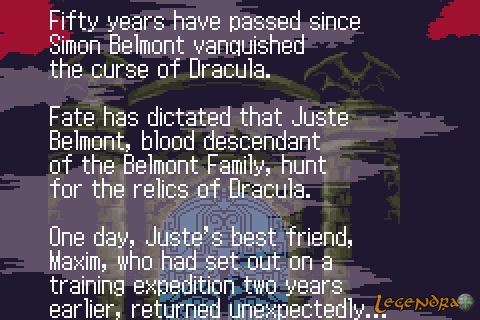 Rien à dire de particulier sur ce CasTlevania : il est graphiquement très agréable, l'animation est très détaillée, la bande-son est tout à fait honorable (bien que moins marquante que les autres épisodes auxquels j'ai pu m'essayer) et la jouabilité exemplaire. Niveau scénario, On nous présente le petit-fils de Simon Belmont dans une sorte de suite à Simon's Quest. C'est un peu convenu, il n'y a pas beaucoup de rebondissements et la fin est assez expéditive.