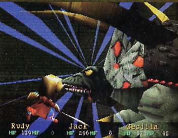 Autant commencer par les points qui m'ont plus : cette introduction géniale et la bande son, remplie de thèmes vraiment puissants ( Into the Wilderness version premier épisode est ma version préférée du morceau!) et c'est à peu près tout. Peut être la 2D aussi et quelques effets de lumières sympathiques en combat... Sinon pour le reste la 3D est particulièrement laide, les combats sont incroyablement mous, longuets, fades voir même codés avec les pieds (combien de fois j'ai pris plus de dégâts APRÈS avoir lancé les sorts de défense?) et l'interface moisie aide pas. Toute la phase exploration est moribonde malgré la bonne volonté de coller quelques énigmes un tantinet recherchées, j'espérais vraiment voir de beaux trucs quand j'ai vu l'étalage des Tools par personnage... et bien non. Le scénario reste classique et relativement poussif, pas vraiment passionnant, heureusement que les personnages sauvent un peu le tout (mais quelle bêtise d'avoir rendu Rudy muet, personnage central à la fois dans l'histoire et l'unique trio jouable !). Mais mon plus grand mal aura été avec l'univers et l'ambiance, vraiment eu du mal à croire que l'alchimie western / sci-fi si bien réussie des épisodes PS2 trouve ses racines dans un jeu qui semble avoir eu peur de s'éloigner des capes et des épées de l'heroic-fantasy bateau. Un village d'indien, un bazooka et deux-trois chapeaux en équipement, ça ne suffit pas. On lui plaint la malchance d'être sorti après FFVII dans nos contrées (et si il est passé inaperçu c'est ptêt pas pour rien...) personnellement je suis heureux qu'il soit sorti avant au pays du soleil levant tellement c'est la différence entre le jour et la nuit. Ça aurait été un bon synonyme de série morte-née, sinon! Il parait que son remake sur PS2 vaut le coup, à voir. Plus tard.