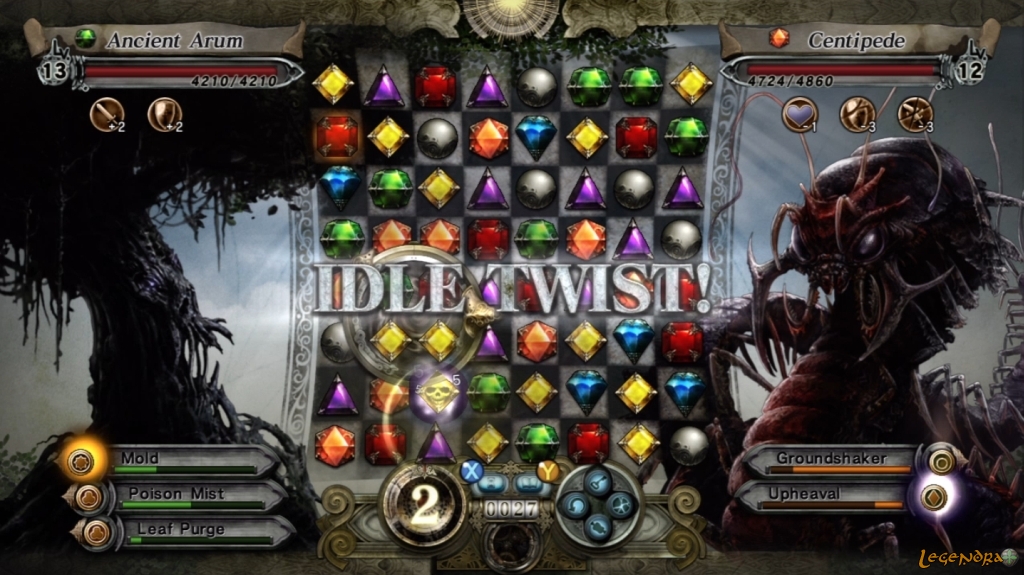 Pour l'aspect puzzle, c'est comme Puzzle-Quest, mais basé sur une rotation de 4 cases afin d'en aligner 3( ou plus) de la meme couleur.