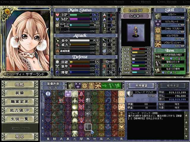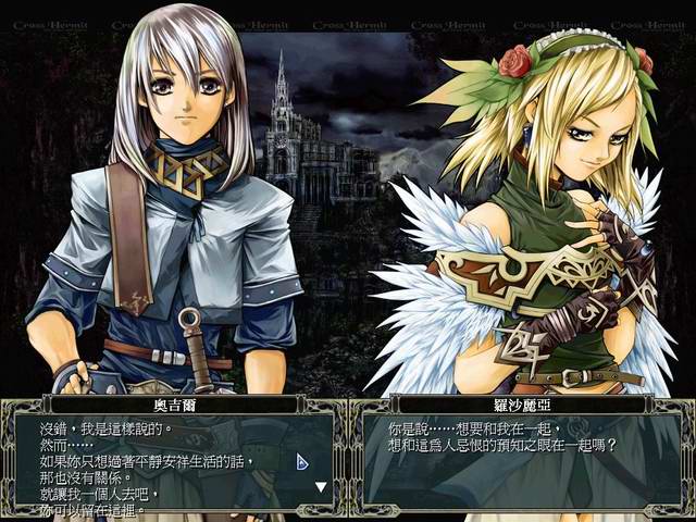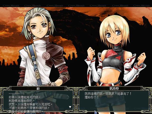 Aucun doute, ce jeu est une perle. Un SLG (strategic RPG) absolument fabuleux, possédant un character design a pleurer et de jolies musiques. Cross Hermit d'Enterbrain propose une grande quantité de mission et un déroulement exceptionnel (peu de missions sont obligatoirement à gagner, le scénar évolus au fil des jours et des missions effectuées, ...), ainsi qu'un système de combat mixant le wargame pc et le rpg. On choisit ses personnages a garder pour la mission mais il faut bien gérer ses troupes et ne pas les envoyer dans la mission out de suite, ils ont en effet qu'un temps prédéfinis et s'en vont irrémédiablement a la fin du décompte. On peut parametrer a merveilles ses persos, leurs attribuer diverses classes (magiciens, guerriers, etc...), et tout est extrèmement agréable à commander. Une pure merveille sur PC.