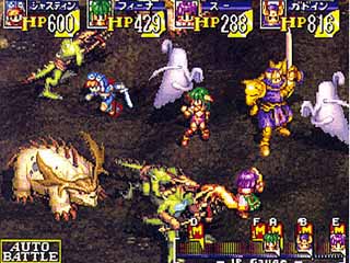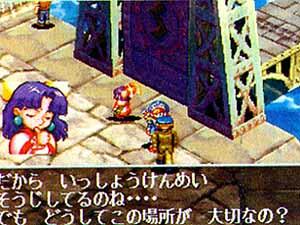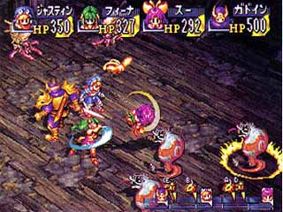 Mais si il y a bien une chose que l'on ne peut oublier dans Grandia, c'est son ambiance. Le jeu est drôle, très drôle, mais il n'en oublie pas ses scènes sérieuses et graves, et surtout propose des passages d'une intensité rare. Il m'est rarement arrivé de vouloir sortir un mouchoir devant un RPG, mais Grandia a réussi à me tirer une larme, prouesse (honteuse pour moi?) que seul Suikoden 2 a réussi par la suite, c'est dire... (ceux qui ont fait le jeu n'auront probablement pas pu oublier cette fameuse séquence ayant lieu au milieu du jeu... Sublime!). Le jeu est aussi assez long, comptez une cinquantaine d'heures pour en voir le bout.