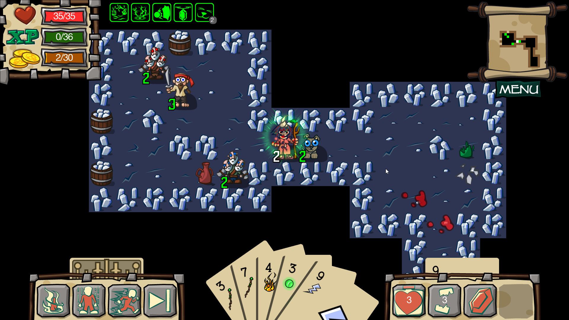 Attention, on a à faire à un RPG mélange de genre : vous y trouverez du roguleike, pour le côté amélioration des bonus de base après réussite de donjon (et déblocage de thune), pour le côté héro qui repart au niveau 1, et encore pour d'autres aspects ; vous y trouverez du simili dungeon crawler, pour la génération aléatoire de niveaux ; et vous trouverez un jeu de carte, puisque les attaques produites par le héro sont issues de combinaisons de carte. Vous voilà prévenu. Ah dernière chose, attention aux quelques bugs résidents, certains vous obligeront à recommencer le jeu à zéro.