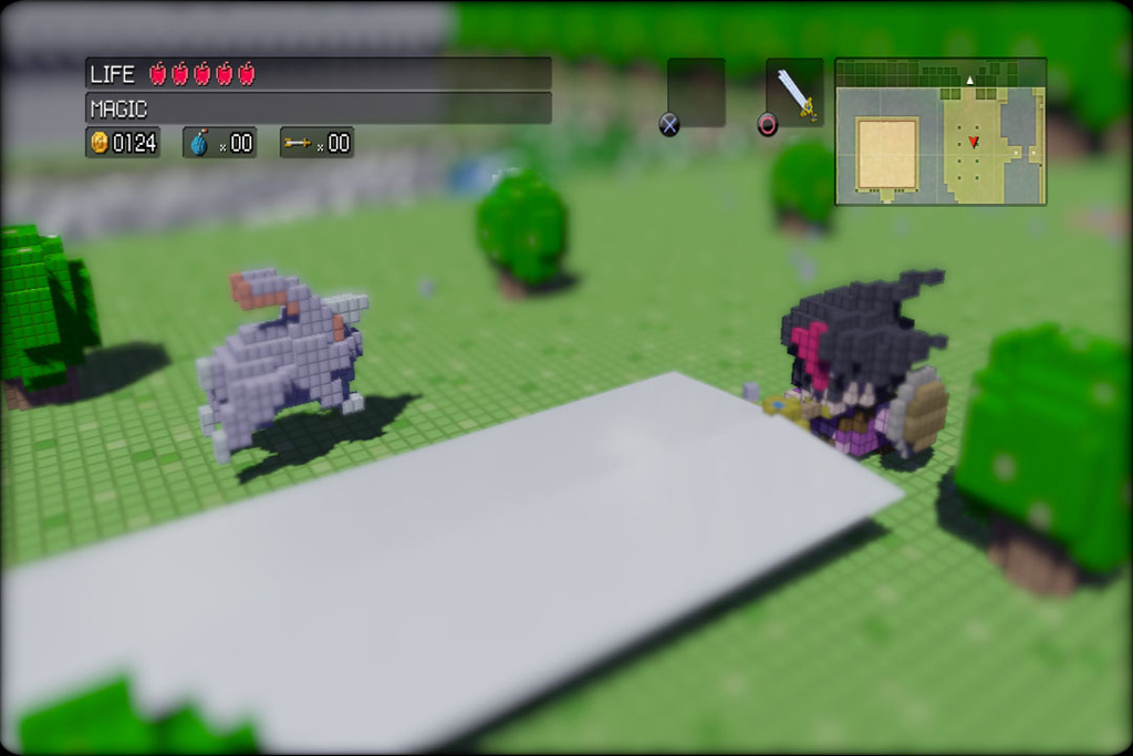 8-bit styleLa volonté d'émancipation des standards du RPG se ressent énormément dans Cladun, et ce dès les premiers instants. Le jeu est donc un Dungeon-RPG, adoptant une esthétique pixel-art très prononcée, qui si elle paraît un peu « lisse » aux premiers abords, convient parfaitement à l'ambiance et devient très acceptable une fois que l'on s'y habitue. Les personnages, malgré le manque de détails dû à cette approche graphique, sont reconnaissables et présentent un style plutôt attachant pour la plupart, et les lieux visités, bien que plutôt peu nombreux, réussissent à proposer une esthétique convenable. Bien entendu, pas de contemplation de panoramas ou de traits architecturaux ici, mais les fortes variations de tons entre les différents endroits permettent un minimum de dépaysement. En outre, un des avantages du style graphique employé est sa grande malléabilité, le jeu jouera d'ailleurs de cet atout pour nous proposer maintes possibilités de créations de personnage, ainsi que d'édition des PNJ. Car oui, vous teindre les cheveux en vert fluo, se combattre avec un Prinny, ou encore changer les vêtements d'un personnage trop ringard, Cladun le permet avec une simplicité d'action presque enfantine. Certes, ce type de modifications n'intéressera pas tout le monde, mais le degré de celles-ci était tout de même à souligner.