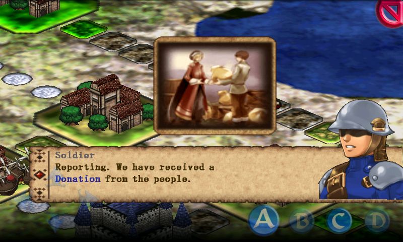 Le jeu se présente de la même façon qu'un Dragon Force. Vous vous trouvez sur une carte remplie de châteaux et bâtiments reliés par des routes qui permettent de se déplacer. Chaque rencontre avec un commandant vilain ou arrivée dans un château ennemi donnent lieu à une séquence de combats. Dans les châteaux vous pouvez notamment réallouer des troupes à vos généraux (jusqu'à 29), convaincre les généraux emprisonner de vous rejoindre (à coup d'argent, cela s'entend) ou bien les exécuter (c'est fun aussi), vous équiper, faire des constructions, modeler les zones environnantes ou encore acheter la loyauté de vos sujets. Des ajustements indispensables avant d'attaquer une nouvelle campagne de conquête sur les royaumes avoisinants. Jusque là, les joueurs de Dragon Force connaissent déjà le principe. Sauf qu'ici, le tout ne se joue pas en temps réel, mais au tour par tour, une différence de taille!