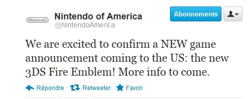 Alors que l'E3 bat son plein, c'est par le biais de Twitter que Nintendo of America annonce la sortie américaine de Fire Emblem Kakusei.