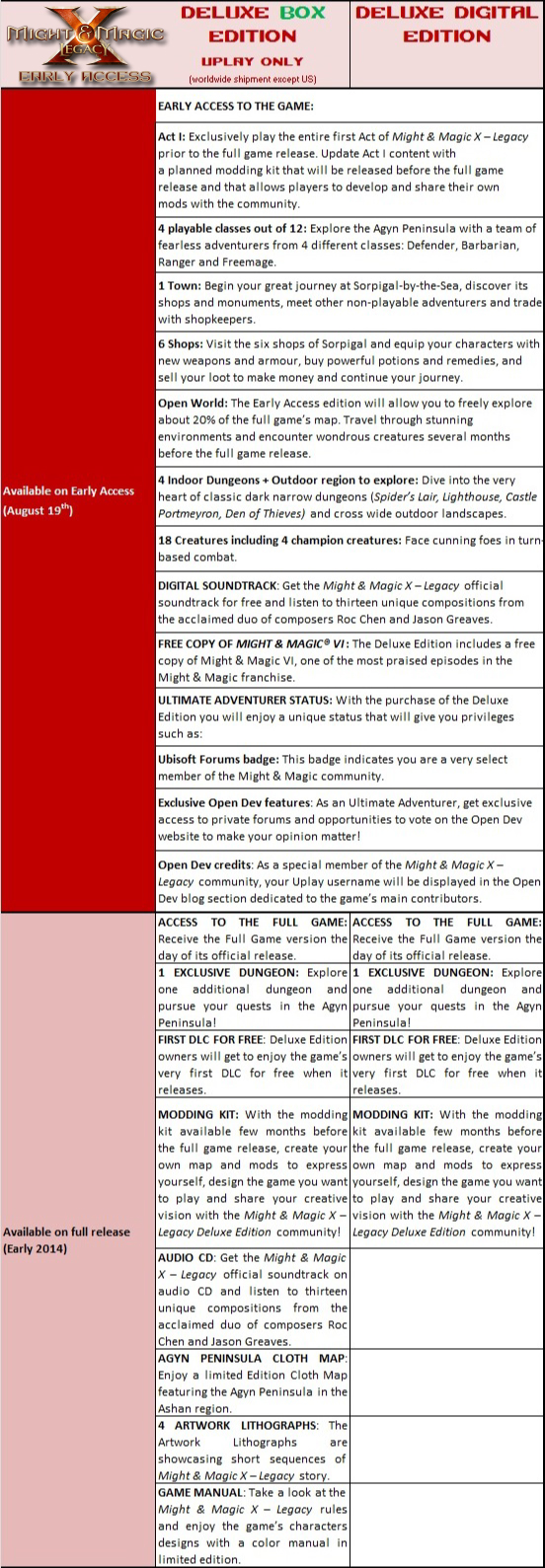 Ensuite, Ubisoft nous apprend que le jeu est d'ores et déjà disponible en accès anticipé sur Steam et Uplay, la plateforme en ligne de l'éditeur. Enfin, juste une partie : l'acte 1, sur les 4 du jeu, et uniquement 4 classes sur les 12 du jeux. Si vous vous dites qu'environ 6-7 mois d'attente est un peu longuet entre un accès anticipé et la sortie du jeu (le jeu étant prévu pour début 2014), sachez que cet accès anticipé n'est offert que si vous passez par la case "pré-commande d'une version collector", soit numérique soit physique. Mieux encore : le soft n'est apparemment pas prévu pour une sortie en boite, le seul moyen d'avoir une copie physique est donc d'acquérir la version collector disponible uniquement sur Uplay. La contrepartie, c'est que vous pourrez indirectement participer au développement du jeu car les développeurs comptent bien prendre compte du moindre retour des joueurs pour améliorer le produit.