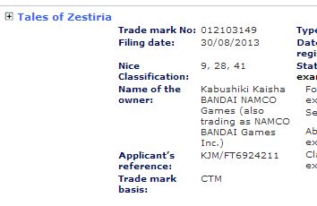 Sorte de running-gag couplé à des suppositions de tout bord sur le web, le dépôt des noms de liés à la série Tales of (voir news précédente) semble enfin trouver un semblant de conclusion : Namco Bandai a signé et déposé le nom Tales of Zestiria, qui faisait partie de cette liste, à la fois au Japon et dans le reste du monde. Un signe majeur qu'un épisode de la série principale est en préparation, si on se fit à Siliconera. Tales of Symphonia Chronicles sortant le mois prochain au Japon et Tales of Xillia 2 ne datant "que" de novembre 2012, on peut aussi fortement supposer que Namco Bandai a déjà quelque chose de neuf dans les tuyaux histoire de respecter son rythme d'au minimum un jeu par an.