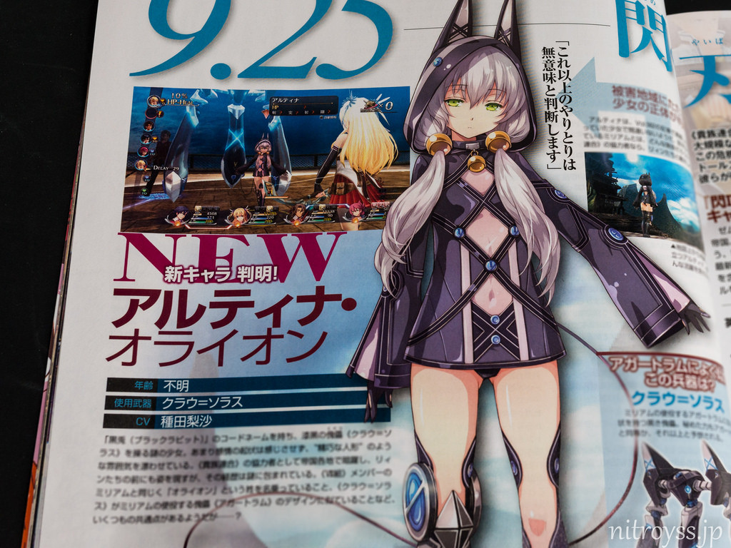 Et hop, c'est daté : The Legend of Heroes: Sen no Kiseki 2 se trouve une date japonaise de sortie, et ça sera le 25 septembre prochain, à la fois sur Vita et sur PS3. Une annonce parue dans le Dengeki qui s'accompagne de quelques informations supplémentaires dont l'annonce d'un nouveau personnage du nom de Artina Orion et d'encore plus de nouvelles mécaniques de gameplay, comme des techniques très spéciales obtenues via des quartz très spéciaux et ayant des conditions d'utilisation très précises (une fois par combat et vidant entièrement la jauge de technique) ou la possibilité pour Rean, le héros, de se transformer en une sorte de super-guerrier surpuissant grâce à la 'Spirit Unification', mais un super-guerrier incapable d'utiliser objets et Artes sous cette forme. Voilà voilà.