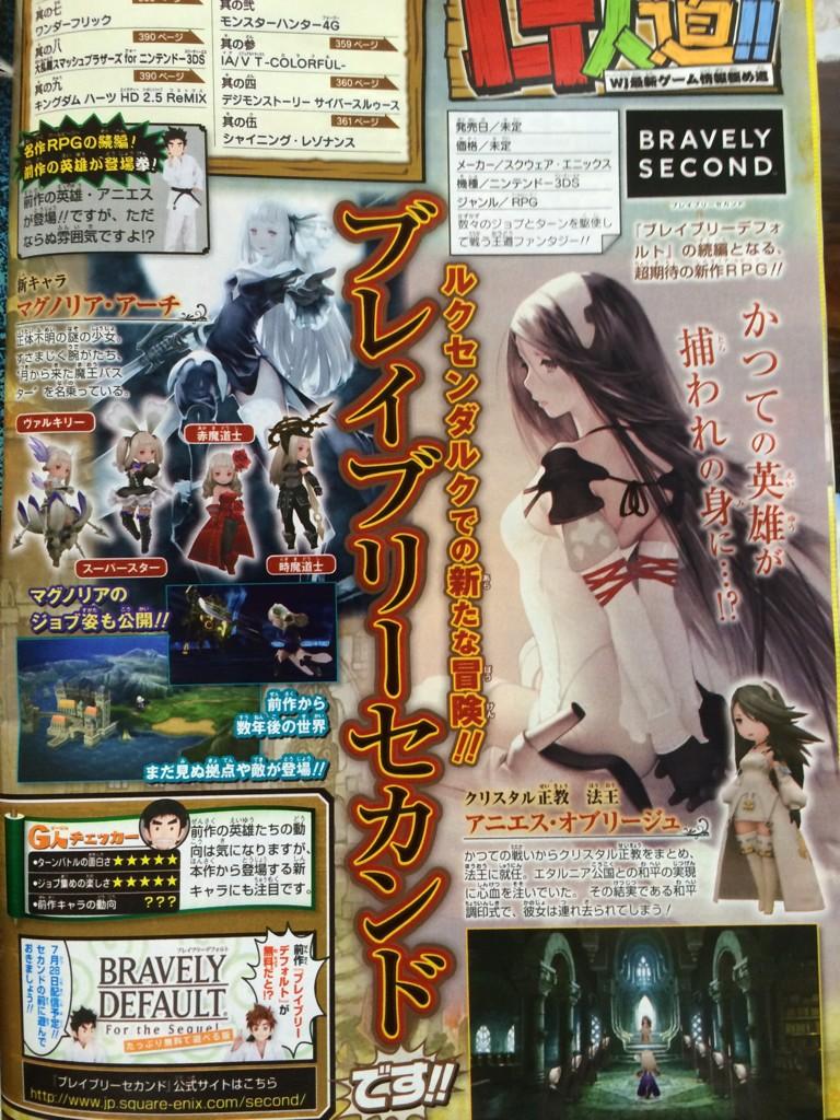 Des nouvelles de Bravely Second via un scan du Famitsu ! Agnes sera présente dans l'aventure comme grande prêtresse de l'orthodoxie cristalline (la religion à laquelle elle appartient à l'origine), elle fait tout son possible pour la paix dans Luxendarc mais elle se fera enlever. Par qui pour quoi, mystère. On voit aussi l'héroïne Magnolia dans 4 costumes différents : Mage Rouge, Idole, Chronomage et Valkyrie.
