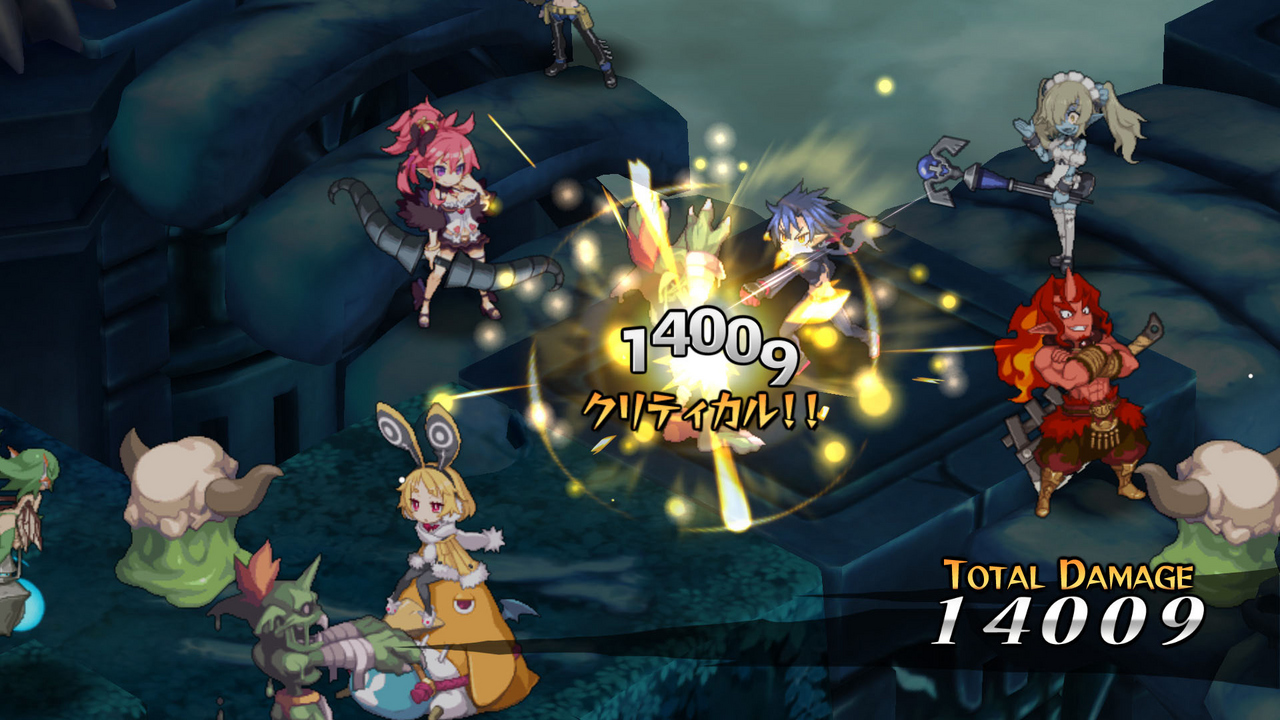 Concernant les mécaniques de gameplay, on savait déjà que le jeu proposera une fiche de personnage plus fournie et une nouvelle mécanique appelée 'Revenge', dont le principe consiste à fournir un boost temporaire aux unités lors du KO d'un membre de l'équipe. Aujourd'hui, on apprend que le jeu va introduire un système de skills combinés, qui comme son nom l'indique va permettre à deux personnages de joindre leurs forces pour porter une super-attaque. Réservé aux personnages majeurs du jeu, ce système va se baser sur un système d'affinité : plus celle-ci augmentera, plus le panel des skills disponibles sera grand. Rayon classes, Disgaea 5 va en intégrer 3 nouvelles : - Le Dark Knight qui maitrise les épées, les haches et les lances et dont la capacité spéciale consiste à blesser toutes les unités adjacentes à la cible de base, - La Maid qui utilise des flingues et qui dispose d'un talent lui permettant d'utiliser deux objets par tour, - La Fairy qui elle sera une classe de soin et qui regagne 10% de ses SP à chaque tour. Enfin pour finir on sait désormais ce que sont les 'Makai-Ougi', à savoir des super-skills propres aux personnages (principaux ?). On a eu quelques clips pour Killia, Seraphina, Usalia et Red Magnus. Et si vous n'avez pas eu vent de la vidéo de 9 minutes qui étale des extraits de la bande son du jeu, c'est par ici pour la piqûre de rappel.